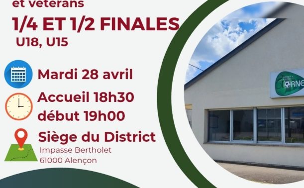 Nous avons le plaisir de vous inviter au tirage au sort des 1/2 de finale de la Coupe Seniors (Seniors Garçons et Vétérans) et les 1/4 et 1/2 finale des u15 et u18.